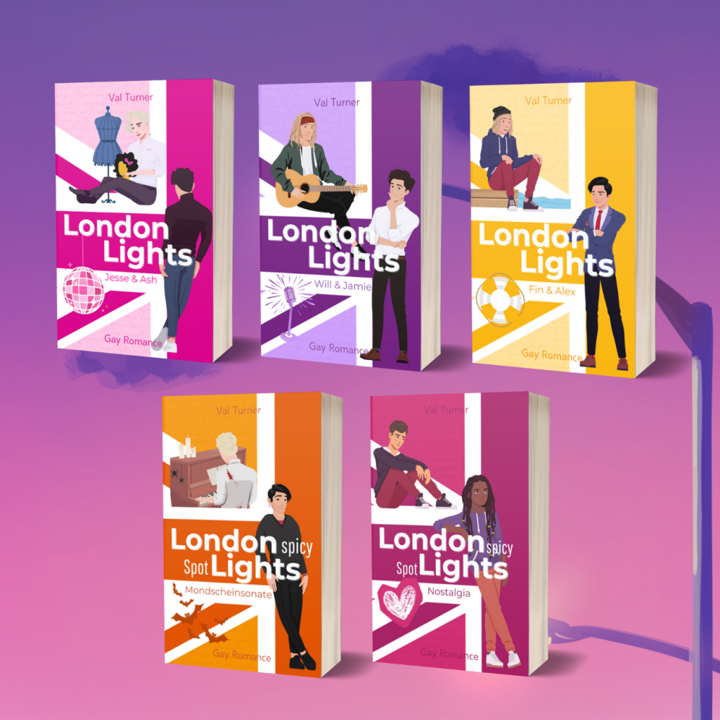 Unter dem Projekt-Titel London Lights veröffentliche ich seit 2024 eine Gay-Romance-Reihe zum Wohlfühlen mit Geschichten aus der englischen Hauptstadt. Die Storys sind alle eigenständig und in beliebiger Reihenfolge lesbar – verschiedene Charaktere und Orte werden dir aber immer wieder aufs Neue begegnen.